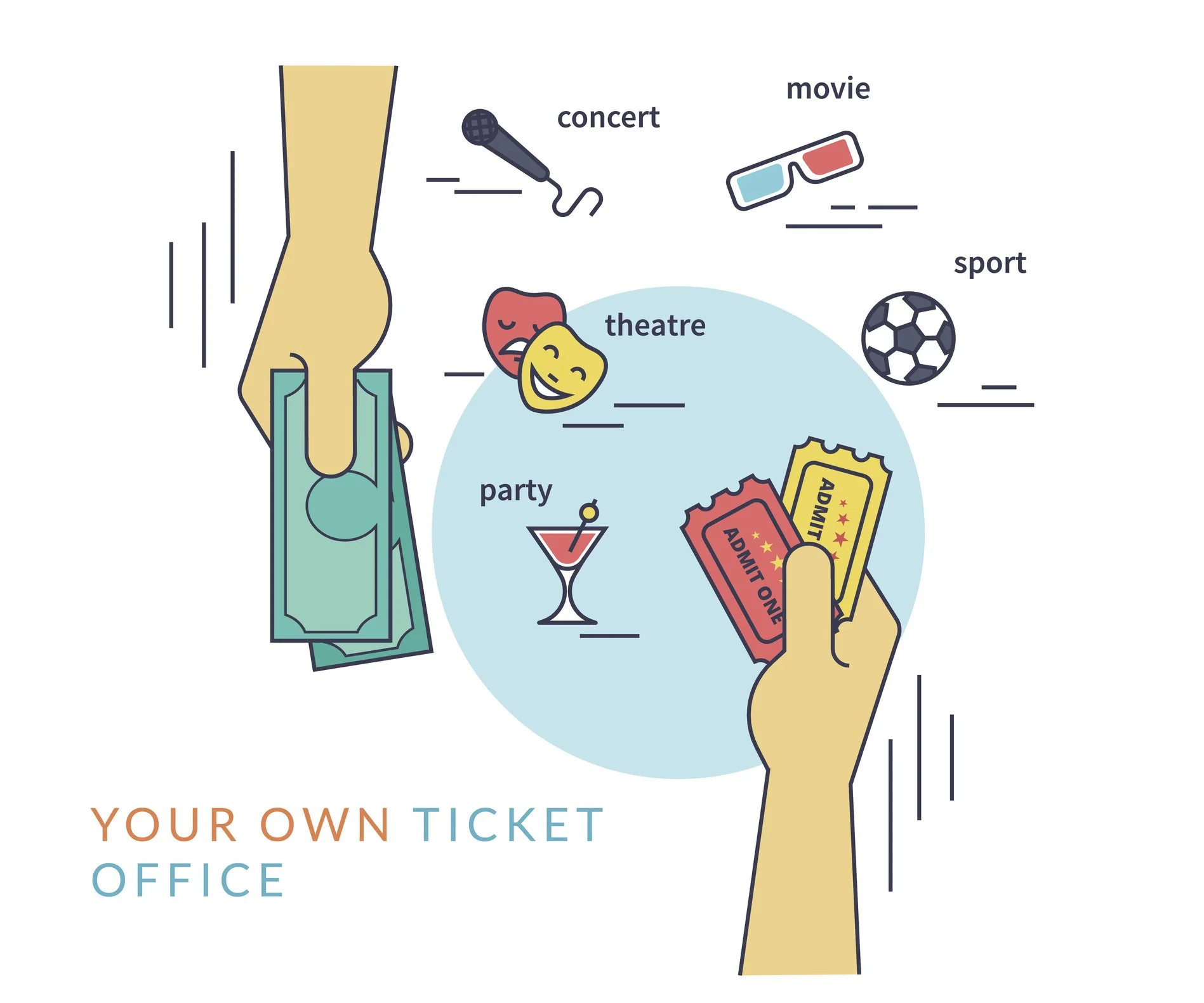You provide use with your artwork or we can design tickets for you. Each ticket can have an image, ticket tile, detailed description, location with map, start time, end time, ticket type e.g. VIP or single entry, up to 3 info sections, e.g. how to get there, parking available, rules and policies.